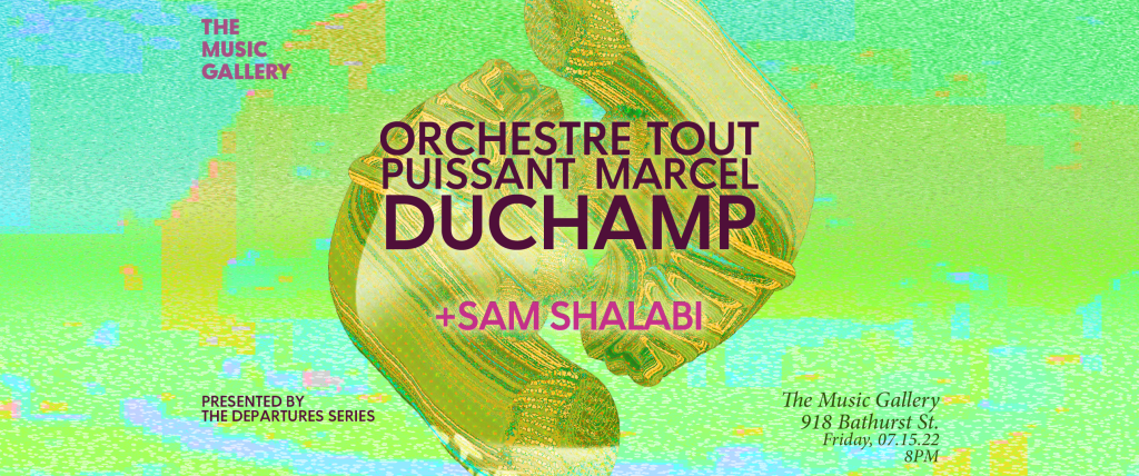 Switzerland’s 14-person Orchestre Tout Puissant Marcel Duchamp will headline the final instalment of The Music Gallery’s 2021-22 season on June 26. Montreal oud performer Sam Shalabi is opening the evening.