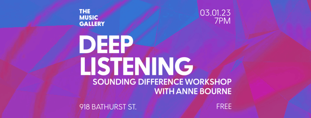 The Music Gallery in Toronto is hosting a free deep listening workshop, featuring the great Pauline Oliveros’ Deep Listening materials. The event runs Mar. 1.
